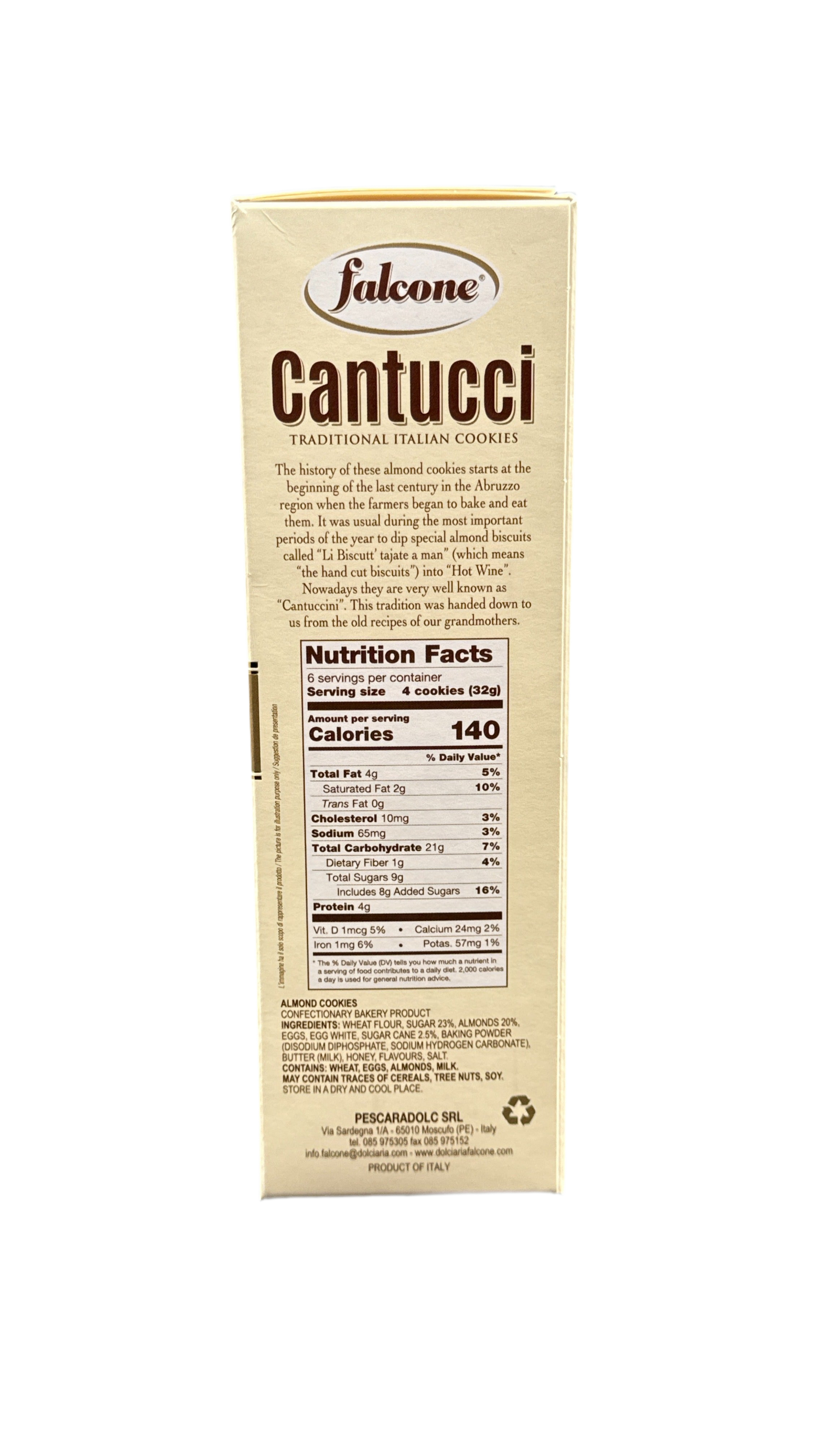 Traditionelle Cantucci d'Abruzzo von Falcone – eine exquisite Spezialität aus dem Herzen Italiens. Diese handgefertigten Mandelgebäcke werden nach überliefertem Familienrezept gebacken und überzeugen durch ihre perfekte Balance aus knuspriger Textur und aromatischer Süße. Die 200g-Packung enthält sorgfältig ausgewählte Zutaten höchster Qualität, die den authentischen Geschmack der Abruzzen-Region einfangen. Ideal zum Eintauchen in Vin Santo oder als raffinierte Begleitung zu Espresso. Ein unverzichtbares Geschmackserlebnis für Kenner italienischer Backkunst.