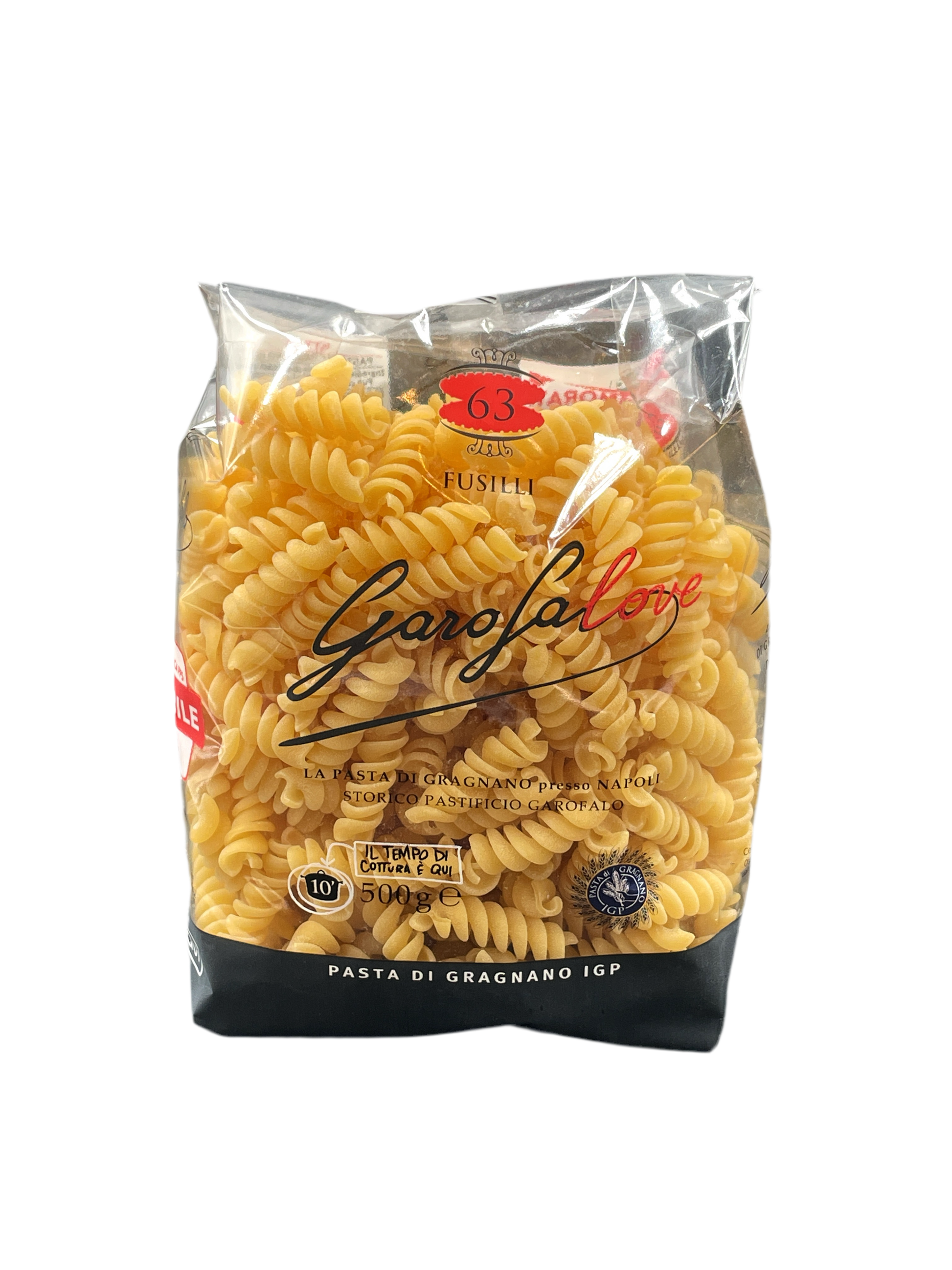Eine hochwertige Pasta der bekannten Marke Garofalo, die für ihre traditionelle Herstellung und erstklassigen Zutaten bekannt ist. Fusilli sind kurze, spiralförmige Nudeln, die aufgrund ihrer Form besonders gut Saucen aufnehmen. Die Zahl 63 steht für ein besonderes Format oder eine besondere Form der Fusilli.