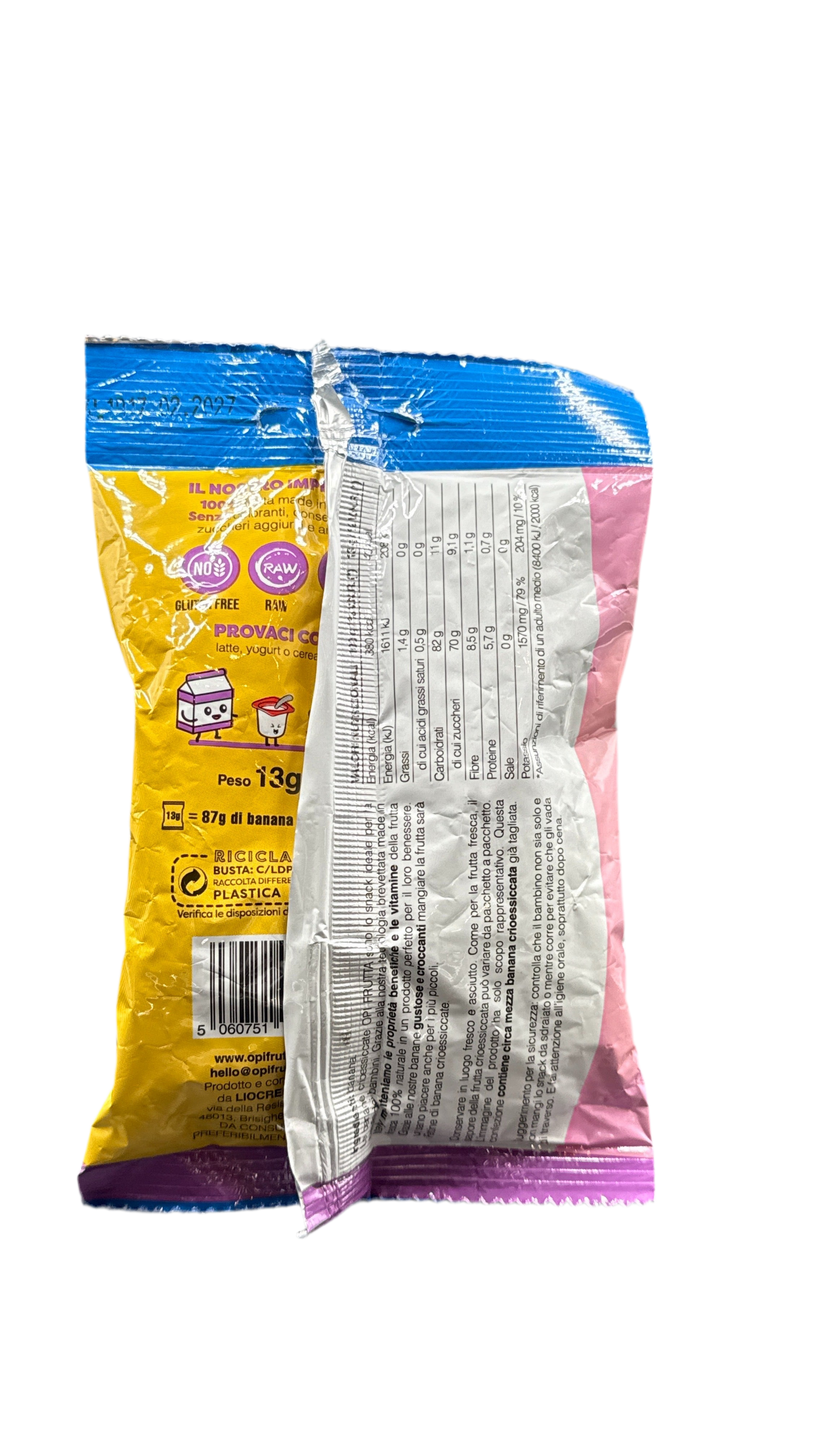 Die Opi Frutta Banana 13g bietet Ihnen erstklassige gefriergetrocknete Banane in ihrer reinsten Form – völlig ohne Zusätze oder Konservierungsstoffe. Durch das innovative Gefriertrockungsverfahren bleiben sämtliche Nährstoffe, Vitamine und der intensive, natürliche Bananengeschmack optimal erhalten. Die knusprige Textur und das konzentrierte Aroma machen dieses Produkt zu einer hochwertigen Zutat für Müslis, Backwaren oder als gesunden Snack zwischendurch. Die 13g-Portionsgröße ermöglicht eine praktische Dosierung und Frischhaltung. Ein Naturprodukt für anspruchsvolle Genießer, die Wert auf Reinheit und authentischen Geschmack legen.