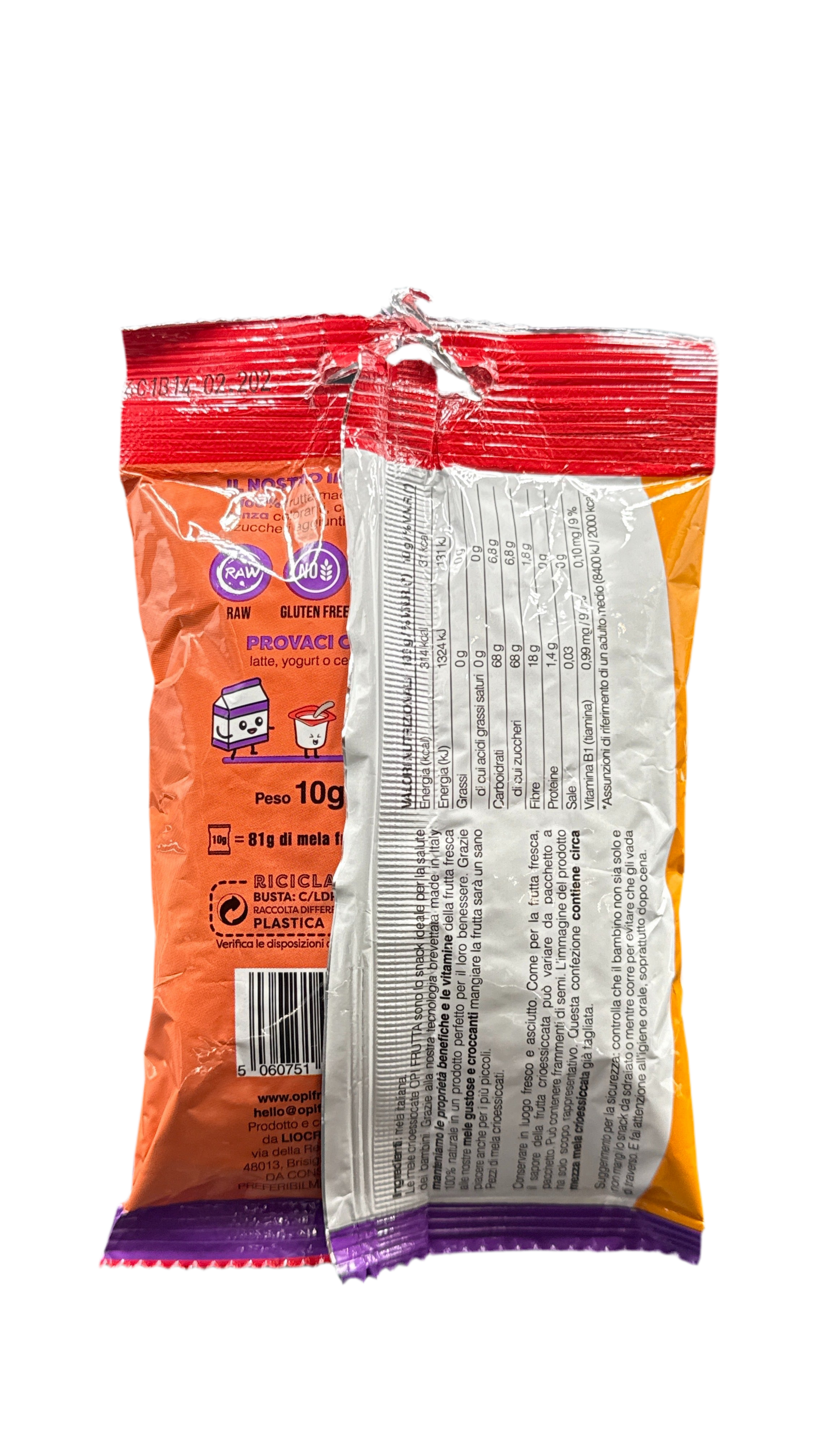Die Opi Frutta Mela 10g bietet Ihnen erstklassige gefriergetrocknete Äpfel in ihrer reinsten Form – völlig ohne Zusätze oder Konservierungsstoffe. Durch das innovative Gefriertrockungsverfahren bleiben sämtliche Nährstoffe, Vitamine und der intensive, natürliche Apfelschmack optimal erhalten. Die knusprige Textur und das konzentrierte Aroma machen dieses Produkt zu einer hochwertigen Zutat für Müslis, Backwaren oder als gesunden Snack zwischendurch. Die 10g-Portionsgröße ermöglicht eine praktische Dosierung und Frischhaltung. Ein Naturprodukt für anspruchsvolle Genießer, die Wert auf Reinheit und authentischen Geschmack legen.