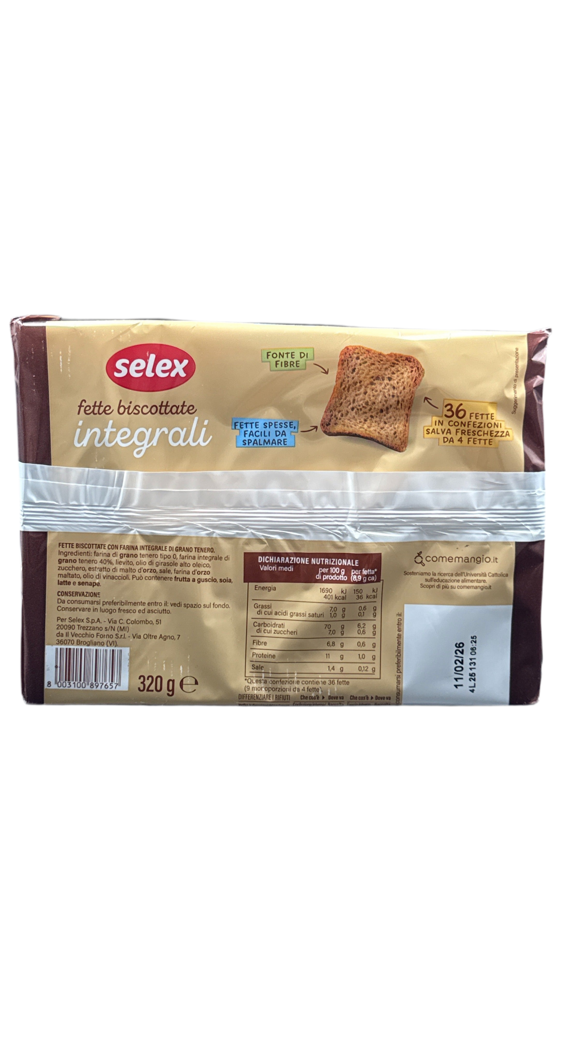 Selex Fette Biscottate Integrali bietet vier Packungen zu je 80 g vollwertigen Genuss. Hergestellt aus sorgfältig ausgewähltem Vollkornmehl, überzeugen diese knusprigen Scheiben durch ihre ballaststoffreiche Zusammensetzung und natürliche Inhaltsstoffe. Ideal für einen ausgewogenen Start in den Tag oder als gesunder Snack zwischendurch, unterstützen sie eine bewusste Ernährung mit langanhaltender Sättigung. Ihre Vielseitigkeit erlaubt es, sie mit Aufstrichen oder Belägen individuell zu kombinieren – für eine genussvolle Balance aus Geschmack und Nährwert.